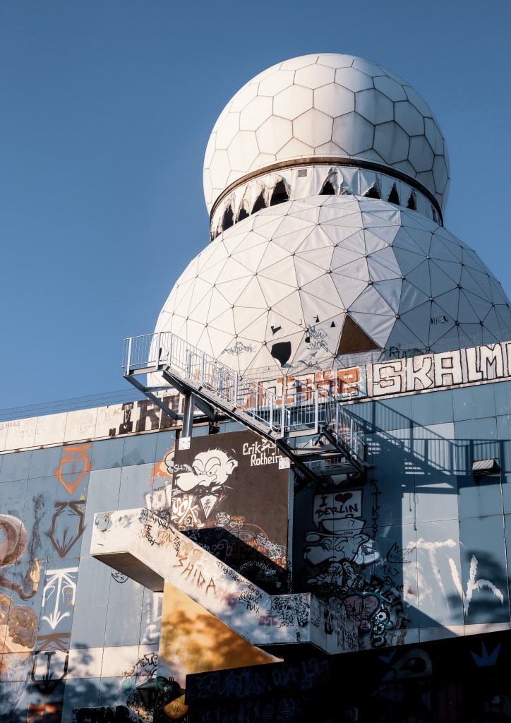 「悪魔の山」と呼ばれるトイフェルスベルクは、第二次世界大戦の爆撃で廃墟になったベルリンの瓦礫を集め、それらを積み上げてつくられた人工的な山。冷戦時代にアメリカ軍とイギリス軍が、東ドイツ、さらにはソ連の無線傍受に適しているとして、西側諸国が諜報目的でレーダーを設置した。かつては盗聴用として建設されたスパイ基地だが、ベルリンのアーティストや音楽関係者たちはその特徴的なドーム型の空間に目をつけ、新たなサウンドスペースへと変貌させたのだ。